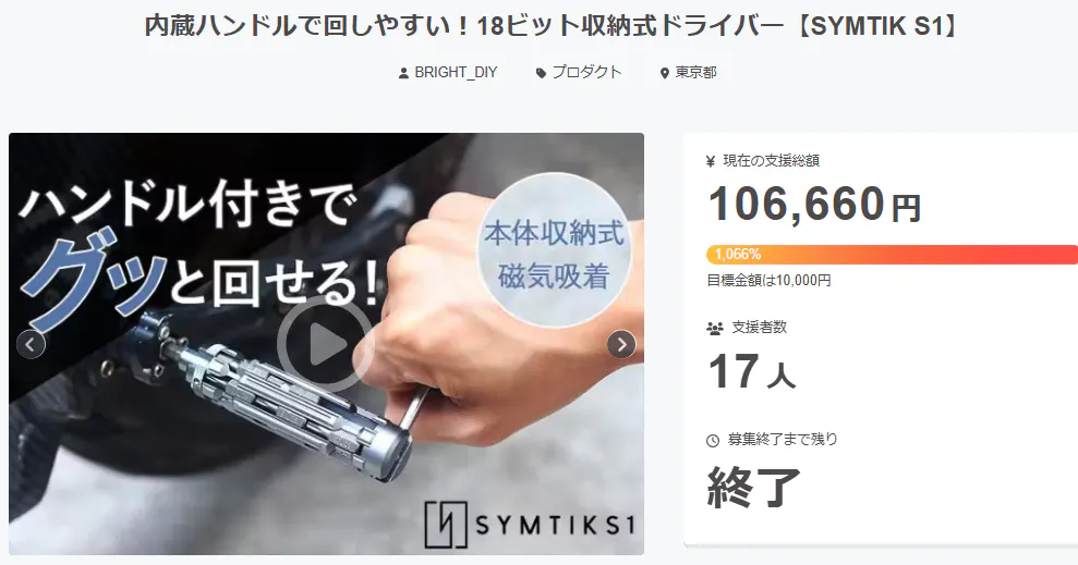 皆様にご満足いただけるリターンをお届けできるよう、全力で取り組んで参りますので引き続き、「内蔵ハンドルで回しやすい!18ビット収納式ドライバー【SYMTIK S1】」をよろしくお願い致します。