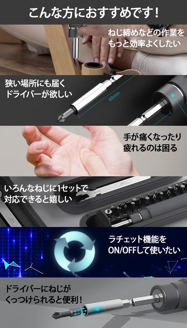 今回ご紹介するのは家具の組み立てなど日常のDIYに便利なラチェット機能付きドライバーセットです。これまで多くの工具プロジェクトを手がけてくる中で、お客様からの以下のような貴重なフィードバックをいただいてきました。