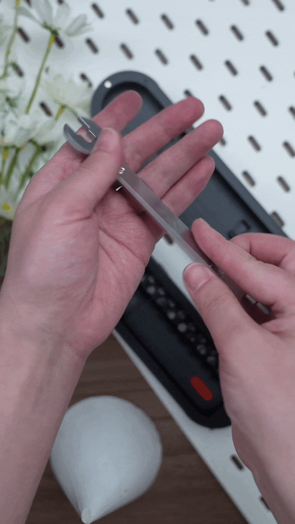 ケースの中にはこだわりのレンチも付属。家庭内での日常的なDIYに使える一般的なナット用に設計されており、4つのサイズ(M5、M6、M7、M8)に対応しています。