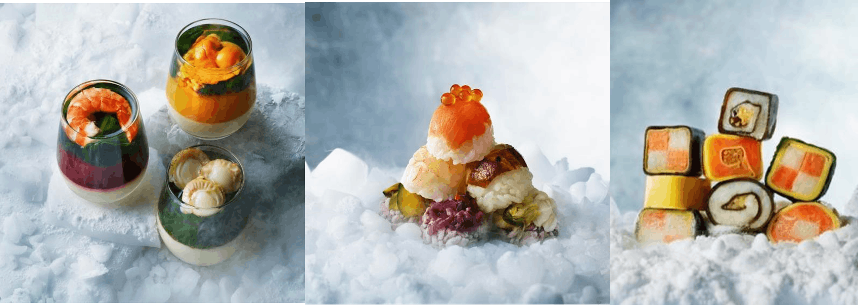 株式会社三嶋フーズ 製品 3色フラン、手毬寿司、日本の伝統巻物