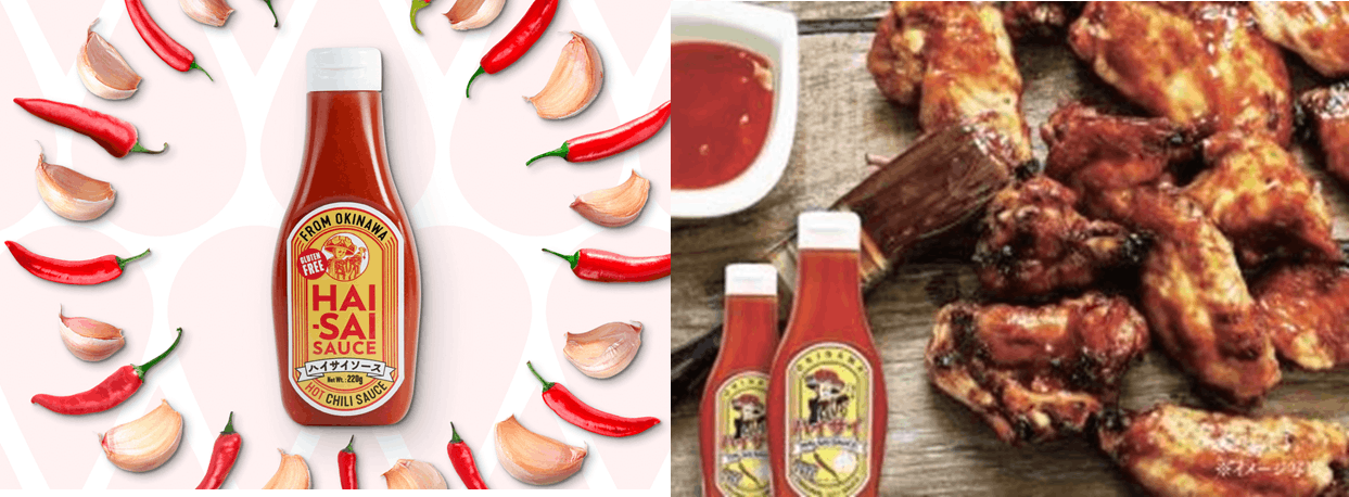 沖縄を飛び出した島人がタイで出会ったシラチャソースをベースに地元沖縄の人々の舌に合うようにブレンドしてできた『ハイサイソース』
