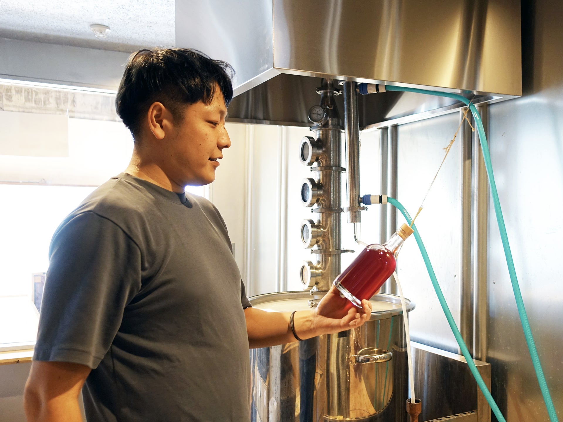 タテヤマブルーイング株式会社代表の大田 聡さんと紅生姜の蒸留風景