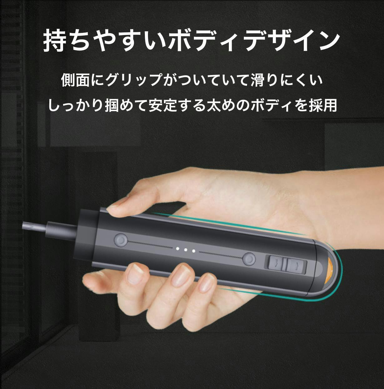 ロック機能と併用すれば、スイッチを押すだけでLEDライト付きの手動ドライバーとして使えます!