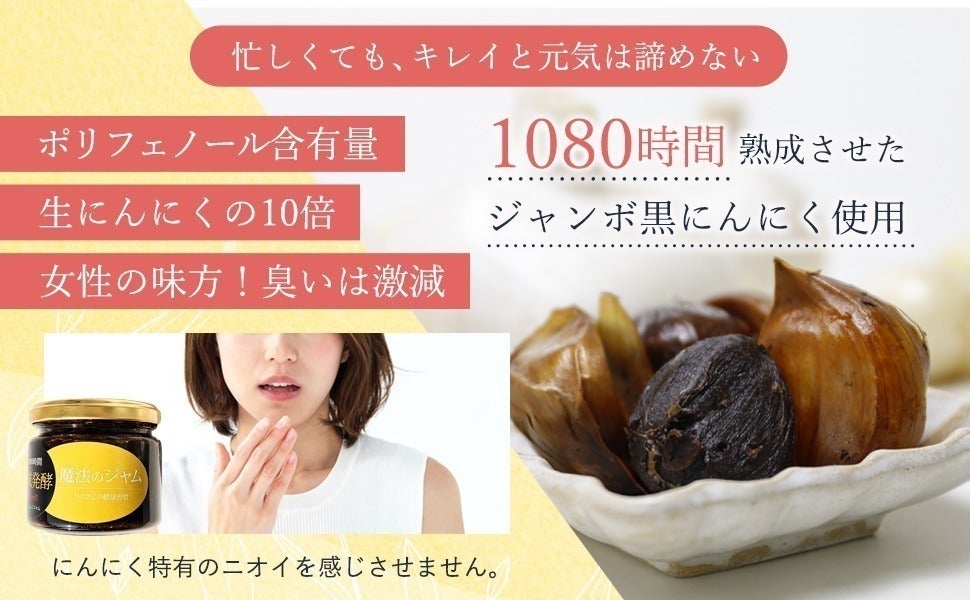 一人でも多くの忙しく頑張る女性に、このジャンボ甘黒にんにくで作る「魔法のジャム」を味わって頂き、もっともっと人生を豊かに楽しんでいただきたいです。