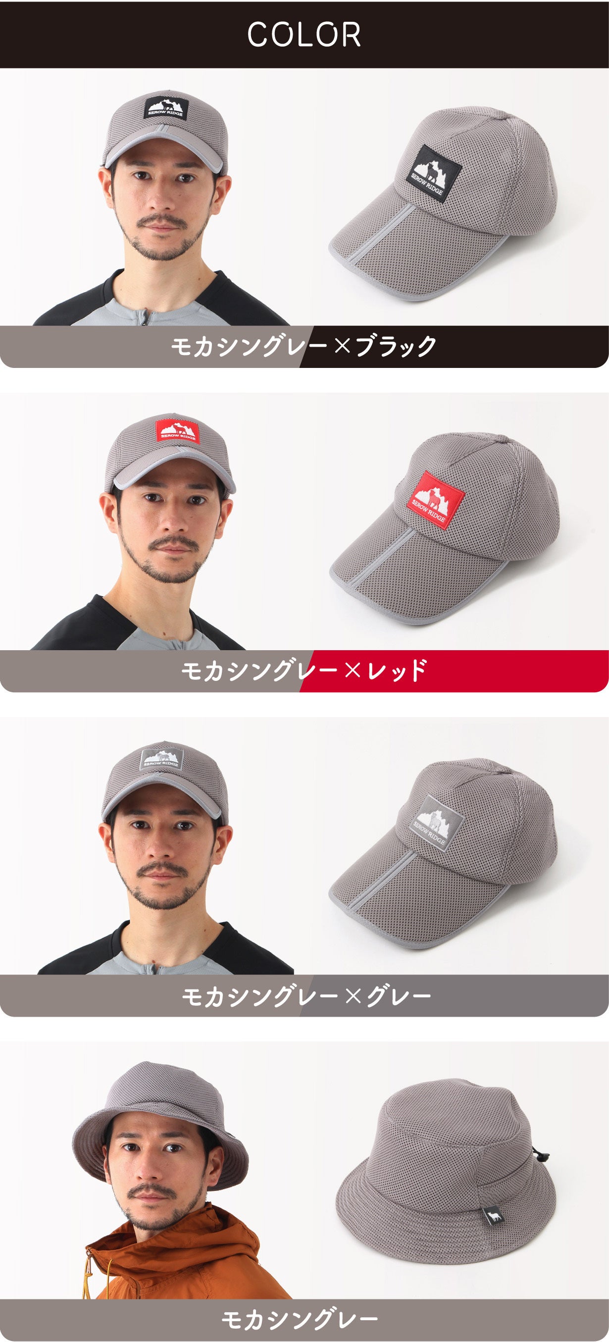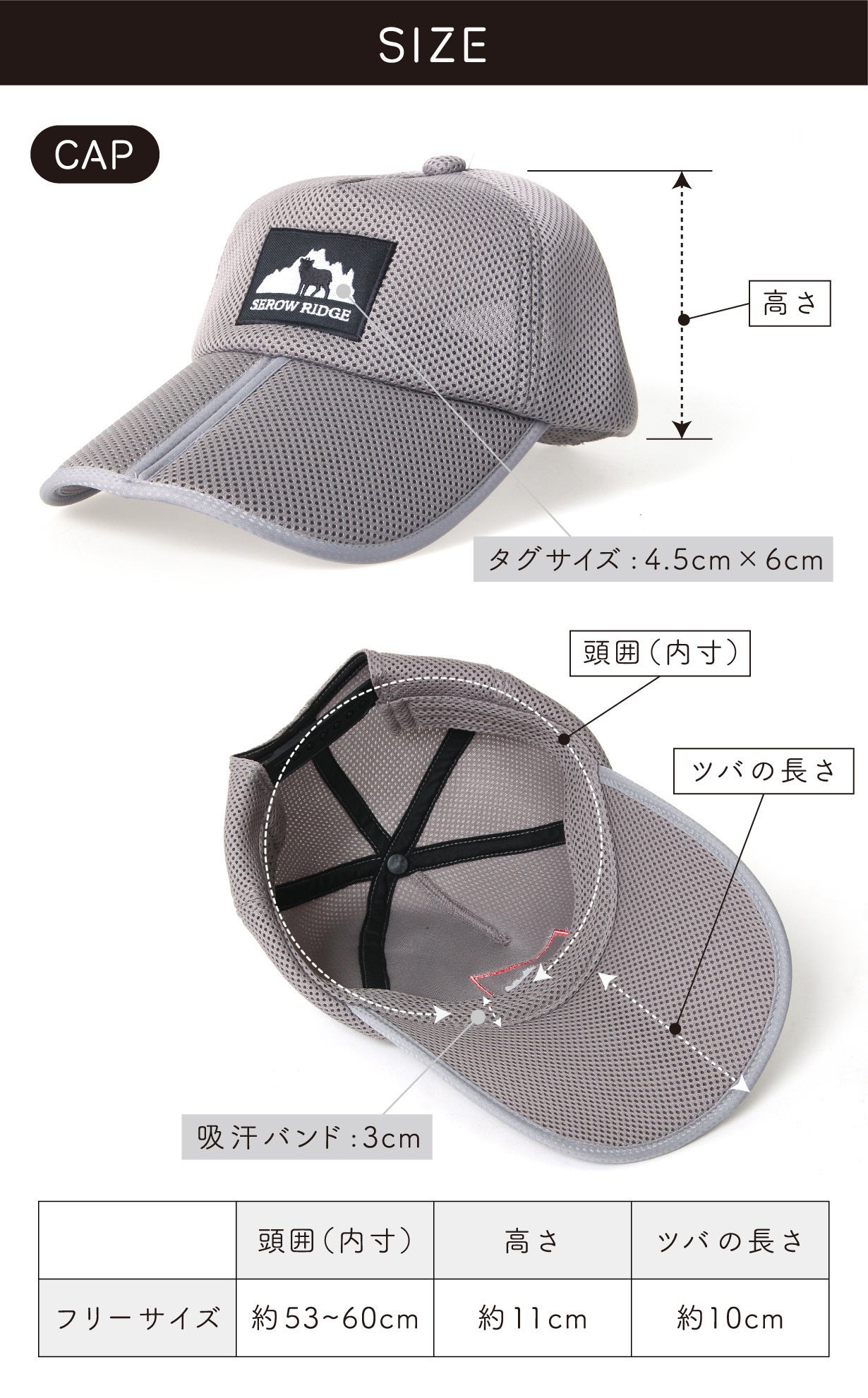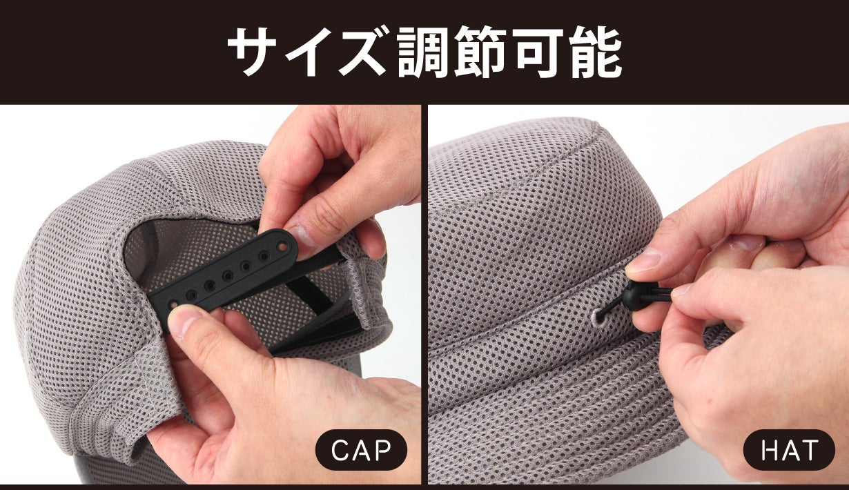 汗をかいて湿った帽子は振るだけで、ある程度の水分を飛ばすことができます。水分が減ると通気性の高いメッシュ生地の効果で帽子を被った時に涼しく感じるのも特徴です。