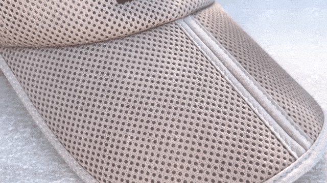 「この毎週の不快感を何とかしたい!」そこで、通気性が良く、大量の汗を吸収できる帽子を作りたいと考え、台湾のメーカーと協力して帽子作りを進めることにしました。3年の歳月を経て、従来のメッシュ生地(自社サンプル)よりも1.54倍、綿100%の生地よりも1.38倍の高い吸水性を持つ、通気性の良いメッシュ素材を開発することができました。しかも、これはコーティングによるものではないため、洗濯機や乾燥機で安心して洗うことができ、吸水性も維持されます。