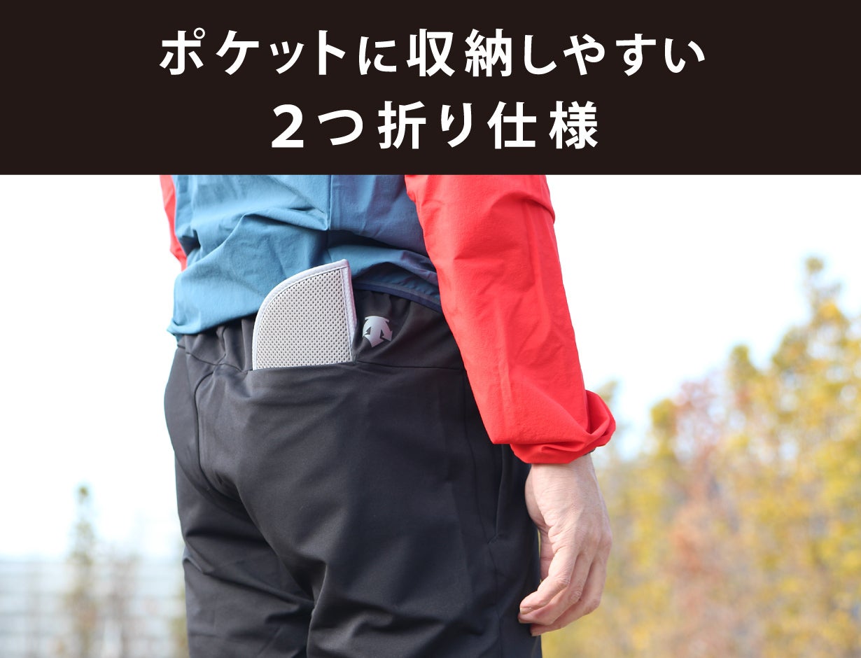 吸汗ベルトは折り返して出したり、しまうことができます。炎天下の汗による不快感を軽減します。