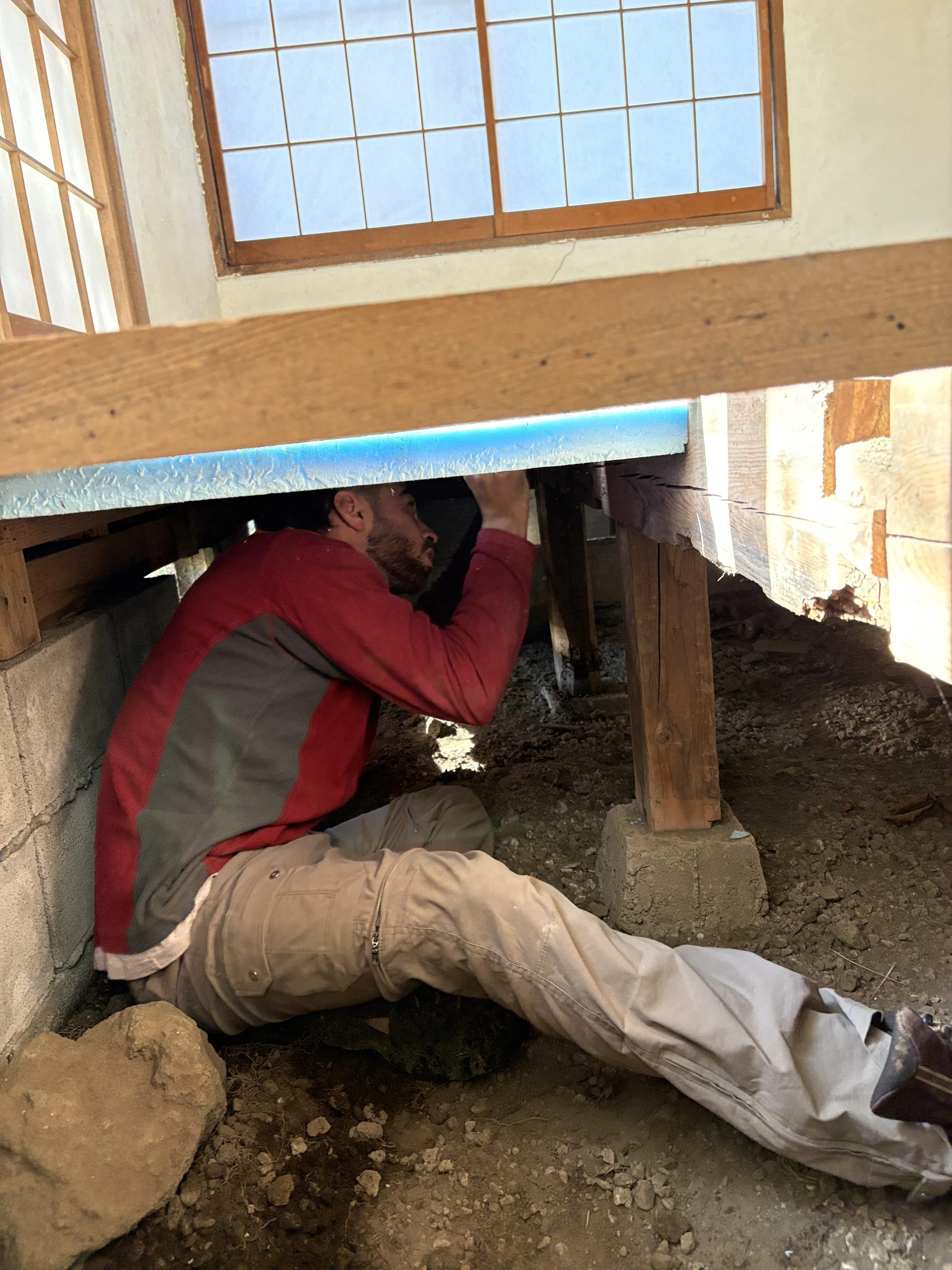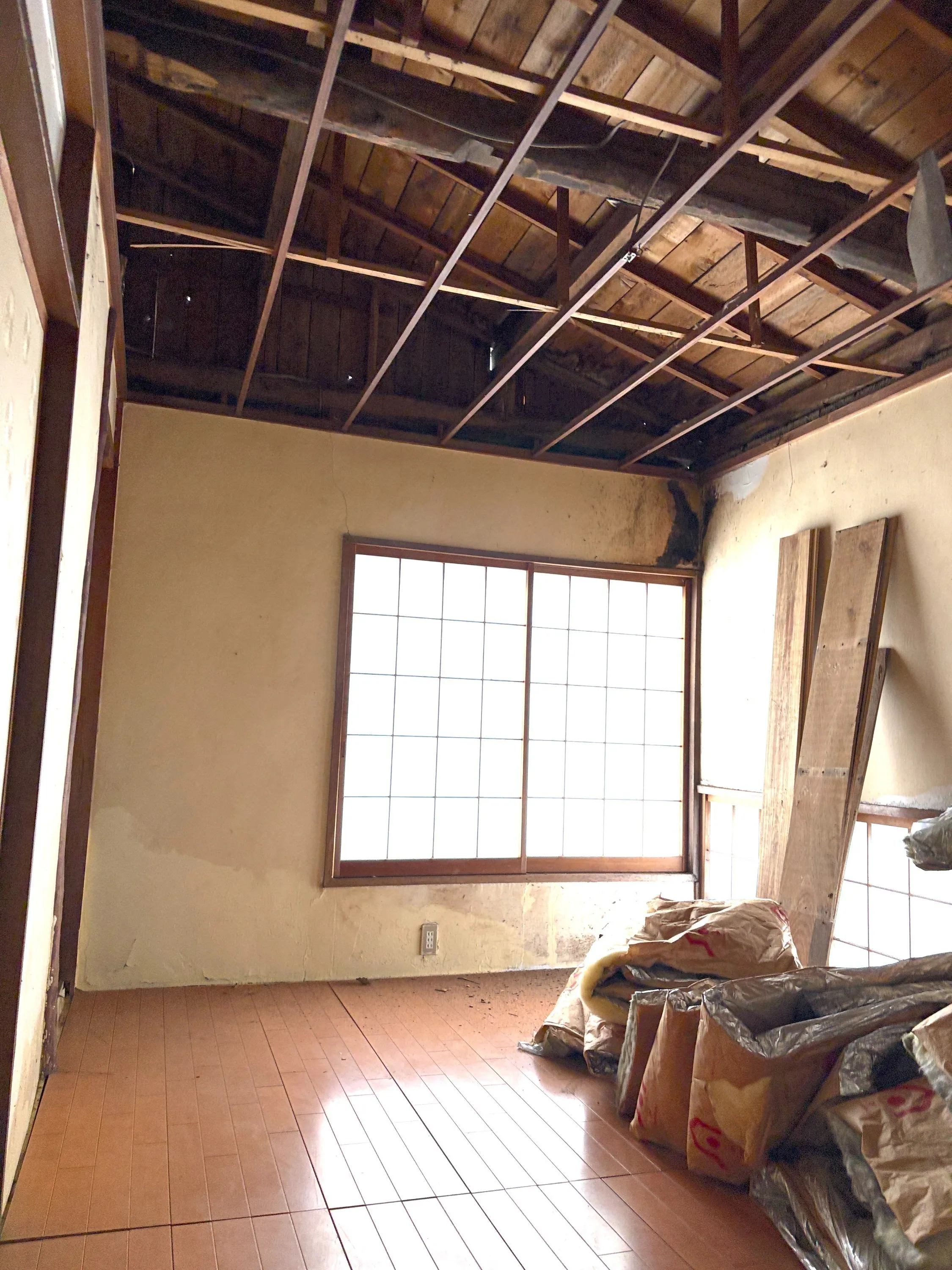 昨年秋ごろから私の想いに共感してくれた外国人の仲間達とともに少しずつ修繕を進めています。まずは雨漏り箇所を塞ぎ、屋内の傷んだ床や天井の木材を撤去するところまで作業が完了しました。現在、さらに快適な空間へと整えていくための準備を進めています。