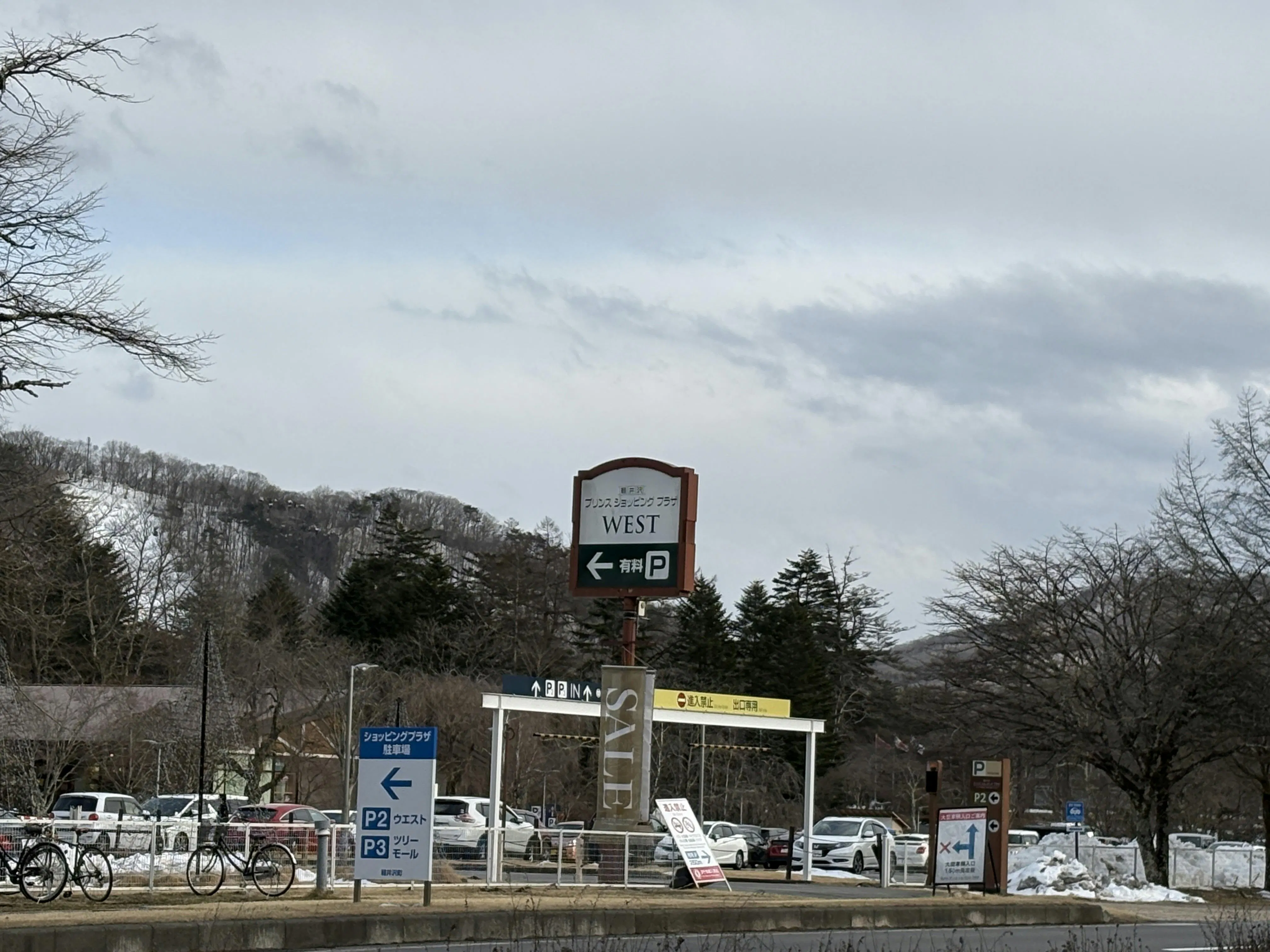 軽井沢プリンスショッピングプラザ(アウトレット)の駐車場や入り口まで車で3分(徒歩10分程度)