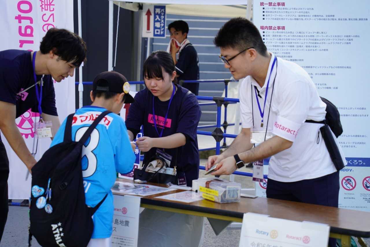 地域に根差したサッカークラブであるツエーゲン金沢様にご協力をいただき、ホームゲームに合わせ、スタジアム内で能登半島地震のボランティア支援金の募金活動を行わせていただきました。私たちの活動に共感してくださったサポーターの方が募金活動に加わってくださり、私たちも勇気づけられました。