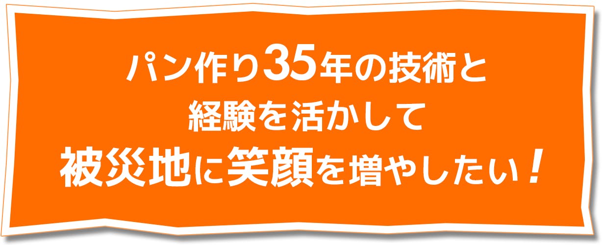 そしてこの度、被災地の方に笑顔と安心を届けられるようなパンを作り、お届けしたいという想いから、出張パン屋出店を決意いたしました。