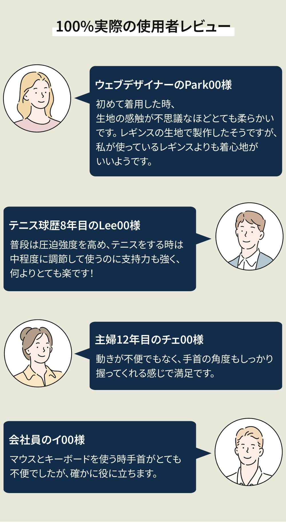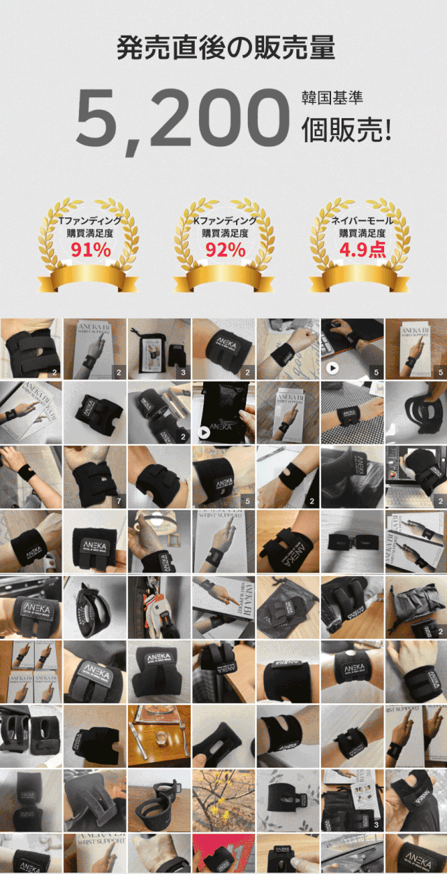 アネカ手首サポーターは、韓国の2社によるプロジェクトとして先行販売され、韓国のドラッグストアでは多くの方々に応援いただきました。また、ネイバーショッピングモールには着心地に関するレビューも寄せられました。