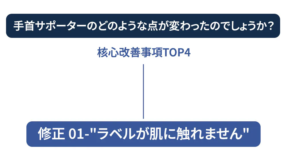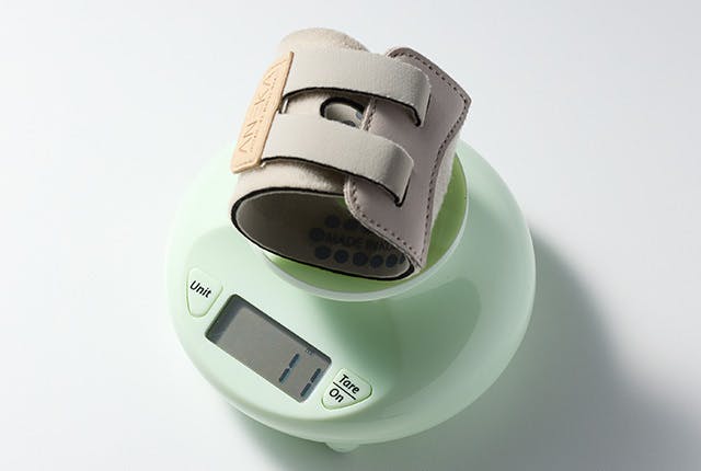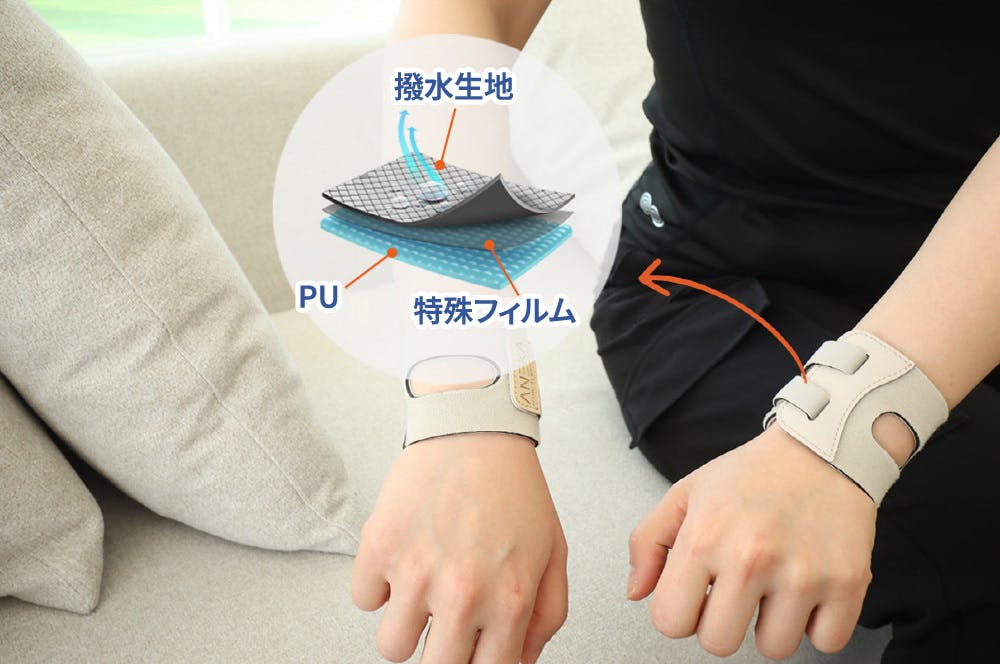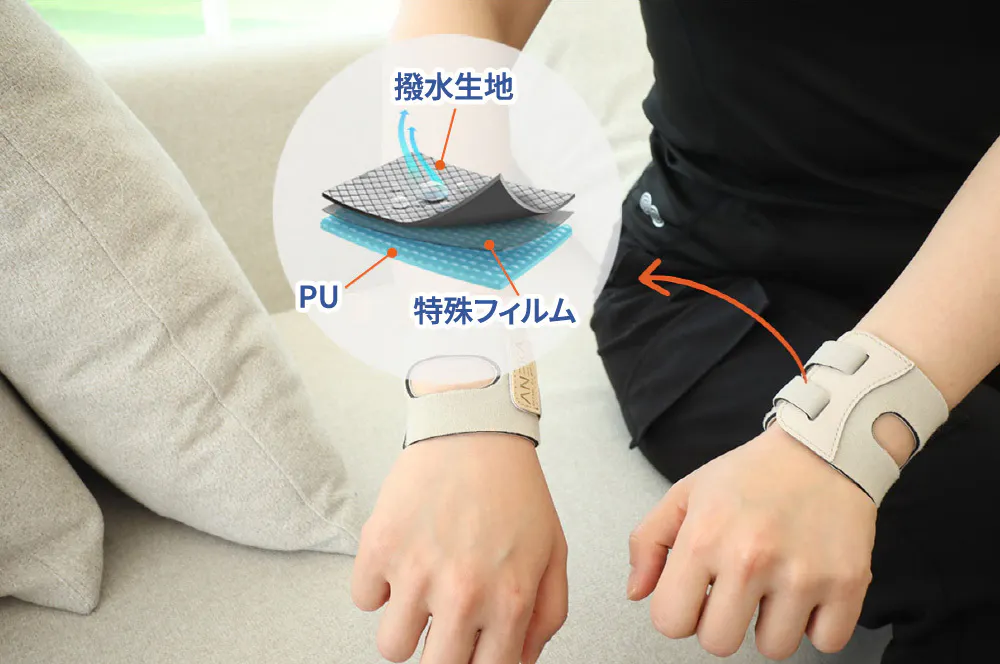 バックル、ボタンなど手首に不便さが増すアクセサリーを除き、サポーター本体を金型で製作し、生地からナイフで押し出す方式で無縫製で製作し、着用時の手首の肌に抵抗感を減らしました。