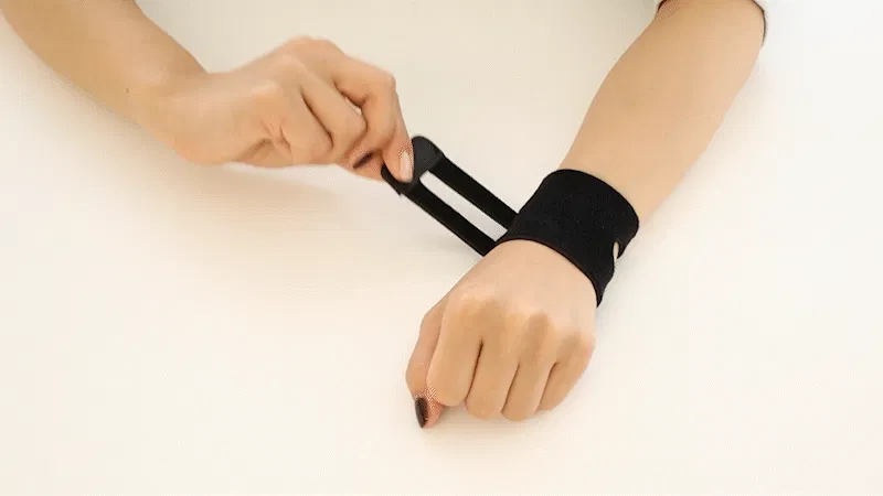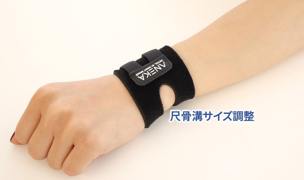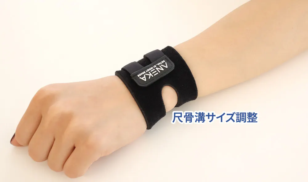 尺骨(手首の突き出た骨)が、サポーターの中央部分にしっかり収まるように調整し、着用してください。