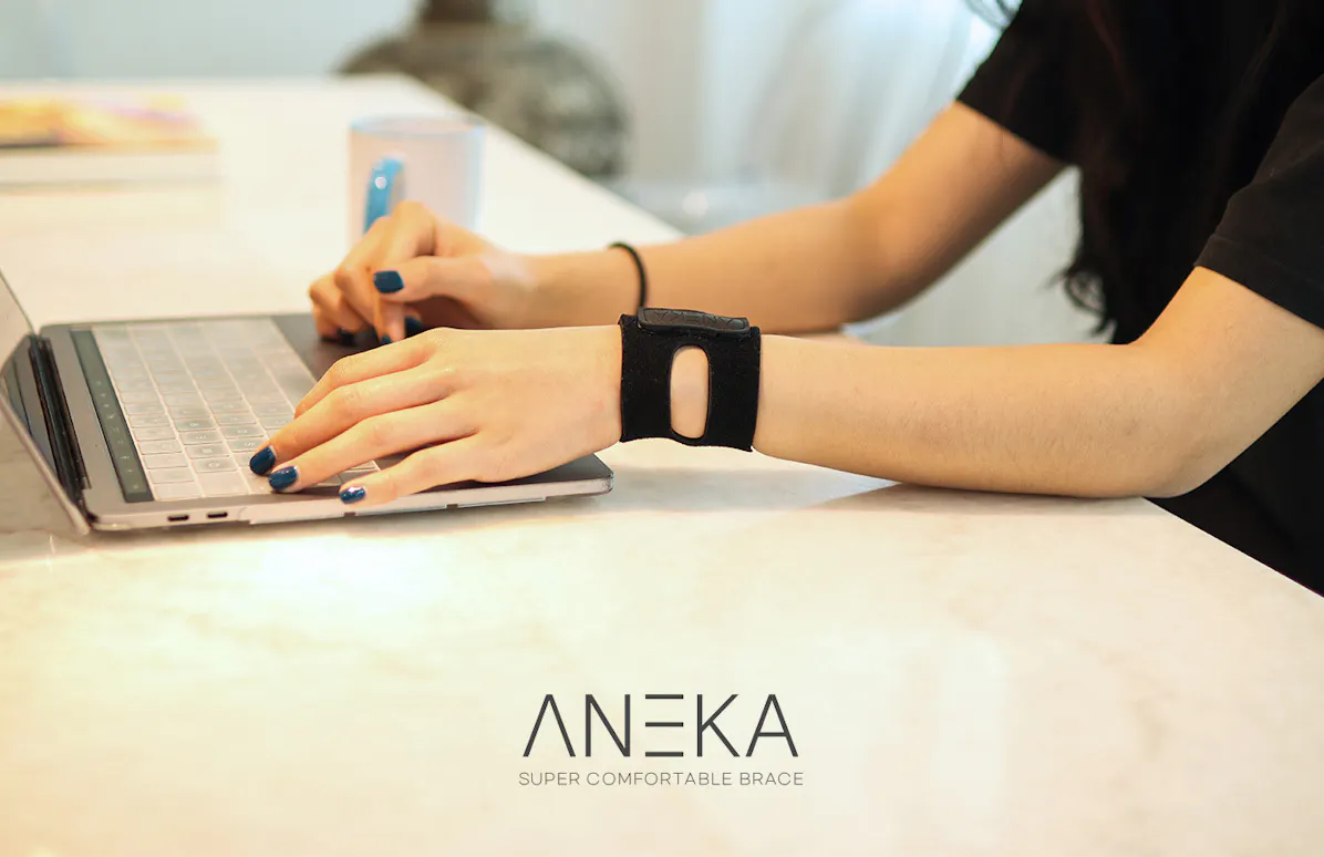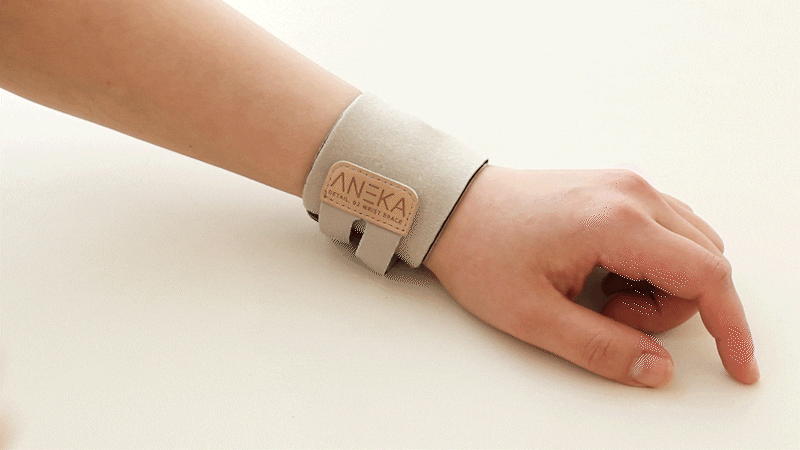 アネカは、革工房を経営する母親の慢性的な手首の痛みを改善するため、サポーターを製作しました。