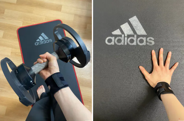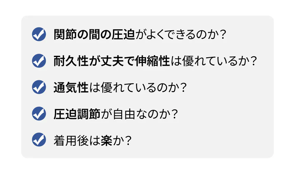 着圧強度とサイズ調節が可能な生地を採用しており、毎回引っ張って調節するサポーターのため、生地の耐久性が重要だと考えています。 円形復元が早い生地の伸縮性で手首が厚い人から薄い人まで誰でも着用できます。