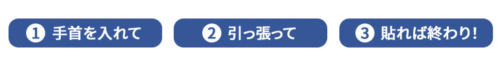 手首の保護は入れて、引っ張って、貼れば終わりです。