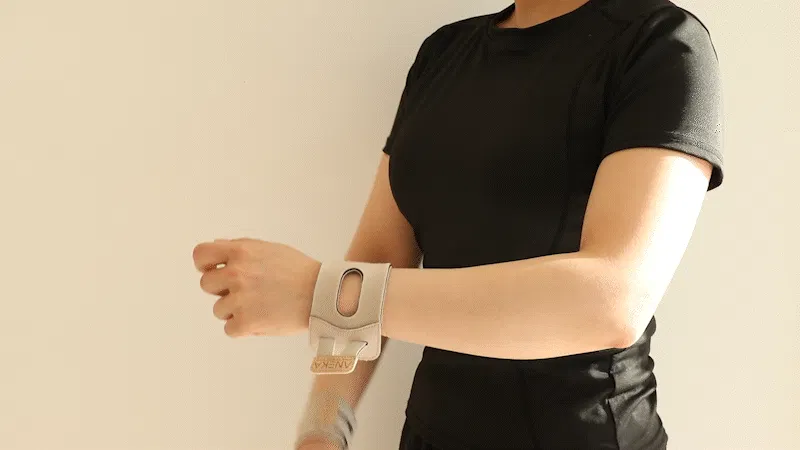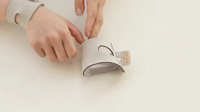 アネカ手首サポーターは、韓国で特許出願中のD-LOCK設計を採用。一人でも簡単かつスピーディーに着用できます。