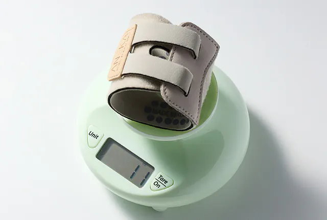 レギンスにも使われる、軽量&弾力性のある生地で手首をしっかりサポート。 わずか11gの軽量設計。着けていることを忘れるほどの快適さです。
