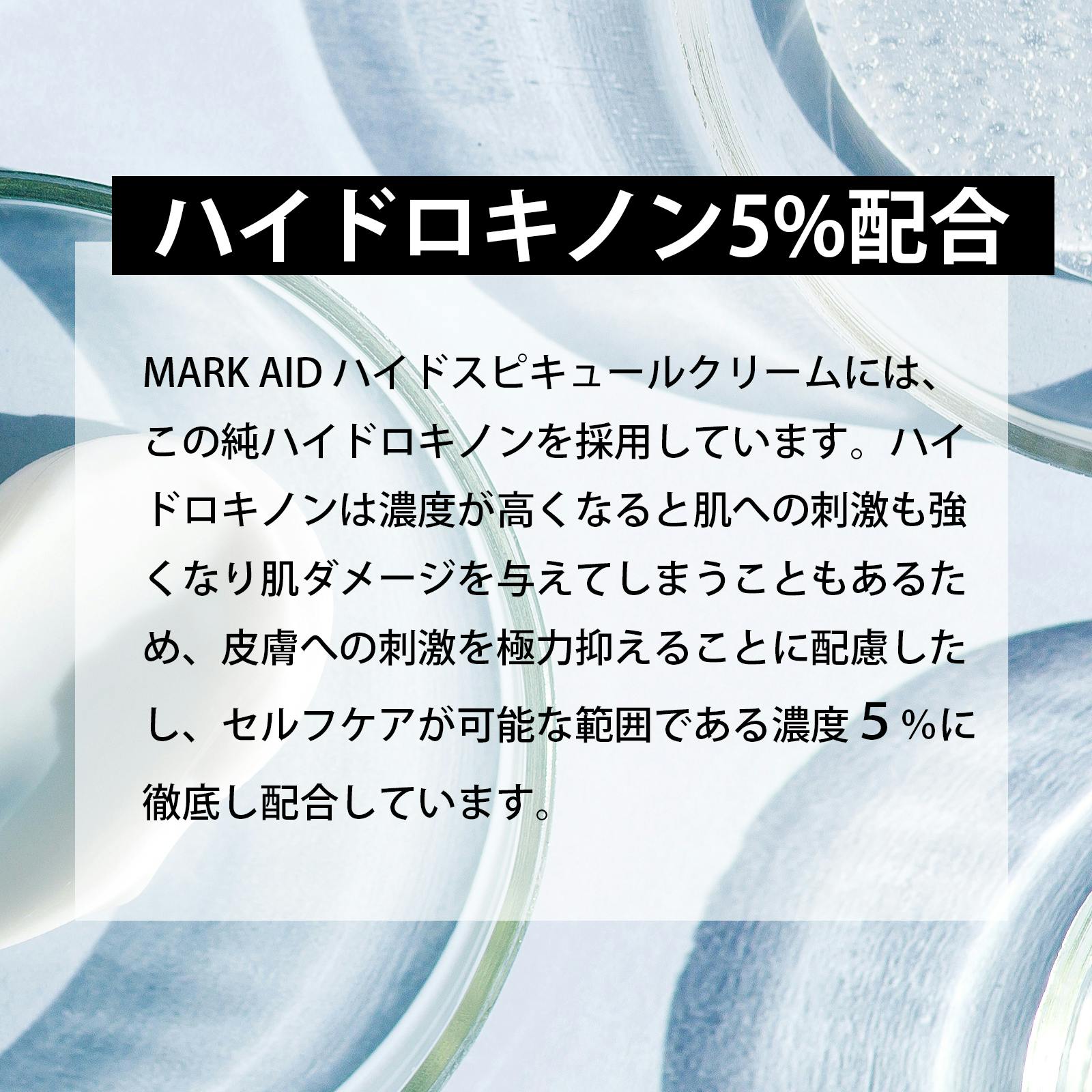 ハイドロキノン※1は、気になる肌くすみなどのピンポイントケアが期待できる成分です。 塗布することで気になる一点に素早くアプローチ。キメの整った白肌を目指せます。 マークエイド ハイドスピキュールクリームは、純ハイドロキノンを5%配合※1、素早く悩みに答えます。