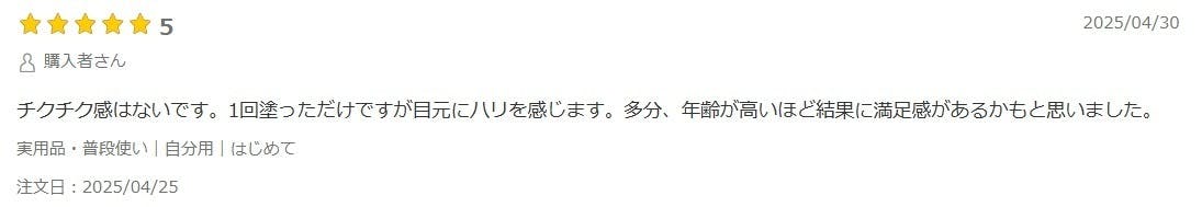 1回のご使用で目元にハリを感じていただけまして、嬉しく思います。