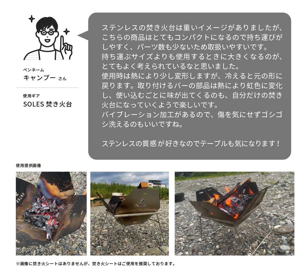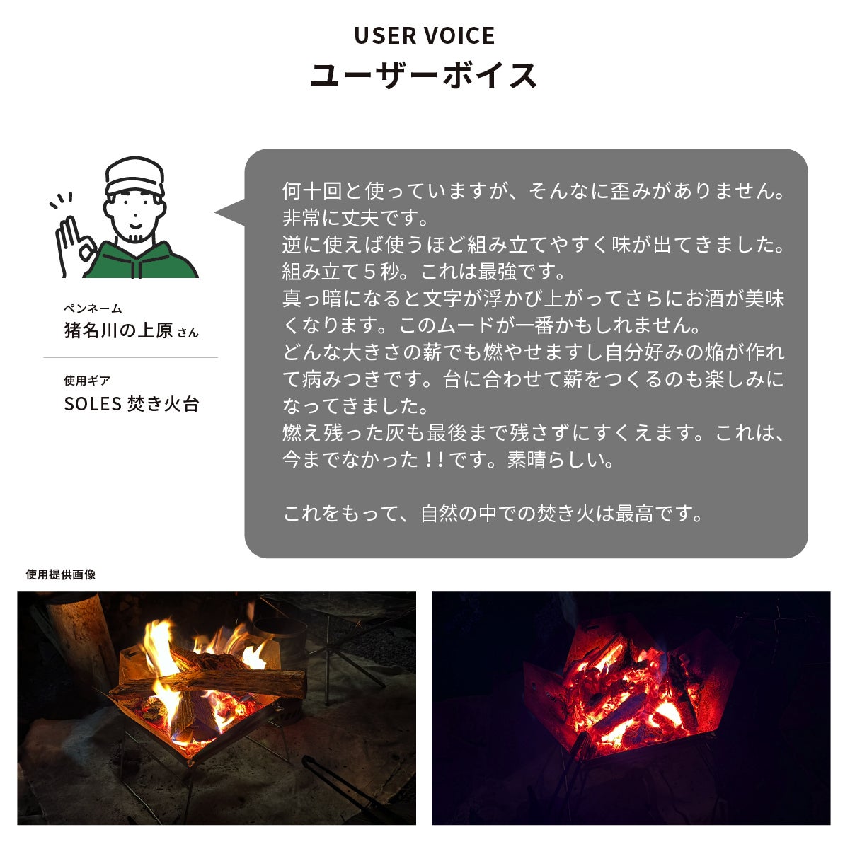 ※焚き火台の使用後は汚れを洗い落とし乾燥させて保管してください。