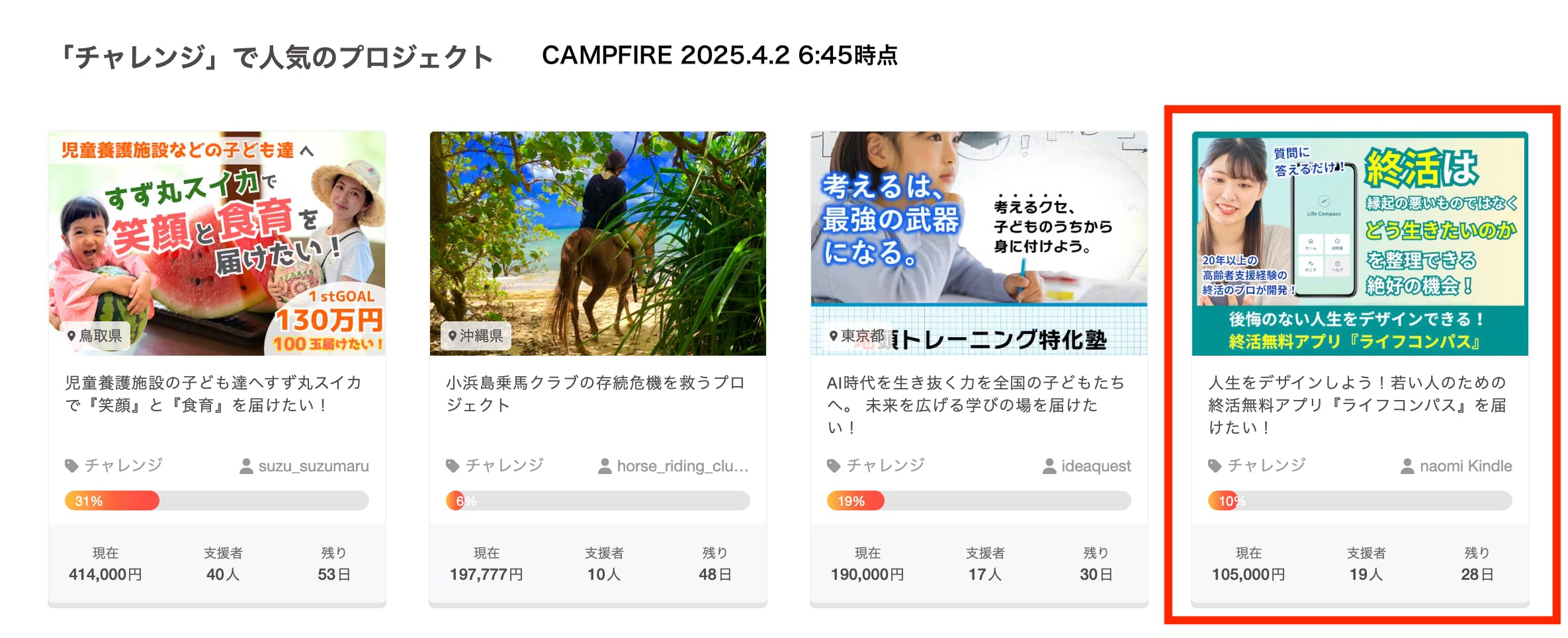 そして、なんとクラウドファンディングサイトCAMPFIREの「チャレンジ」カテゴリーで4位まで押し上げていただいております!!
