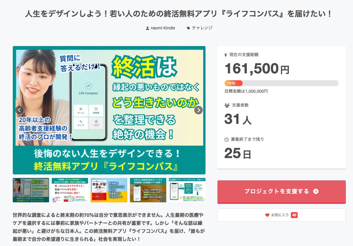 人生をデザインしよう!若い人のための終活無料アプリ『ライフコンパス』を届けたい!