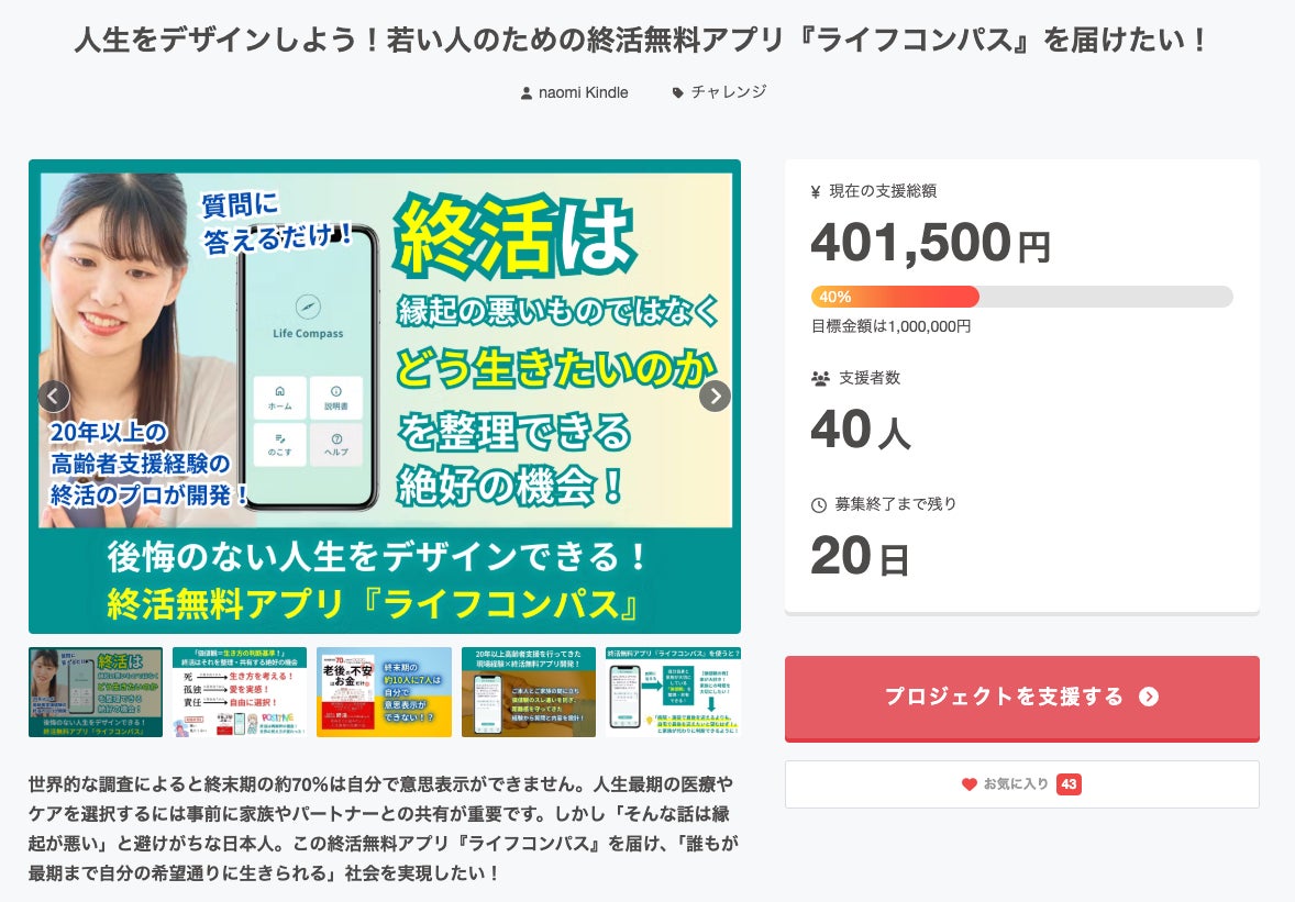 人生をデザインしよう!若い人のための終活無料アプリ『ライフコンパス』を届けたい!