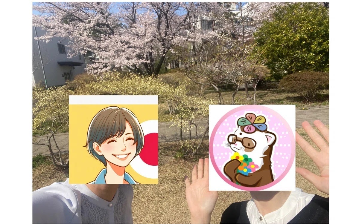 先生とのお話が終わって喜ぶ私とゆえさん!