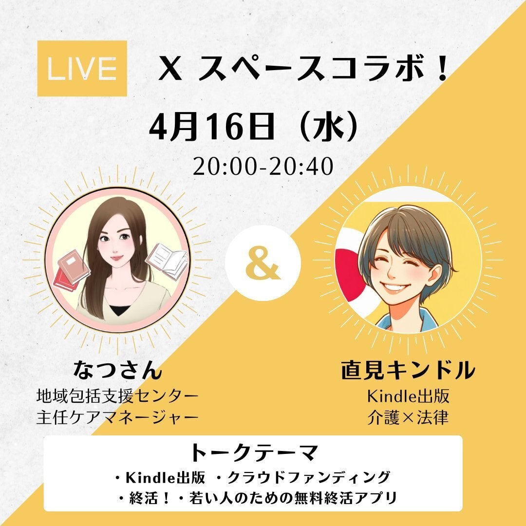 昨日は、ふたりとも主任ケアマネージャーで、Kindle出版をしているなど、共通点の多いなつさんとXでスペースをしました!