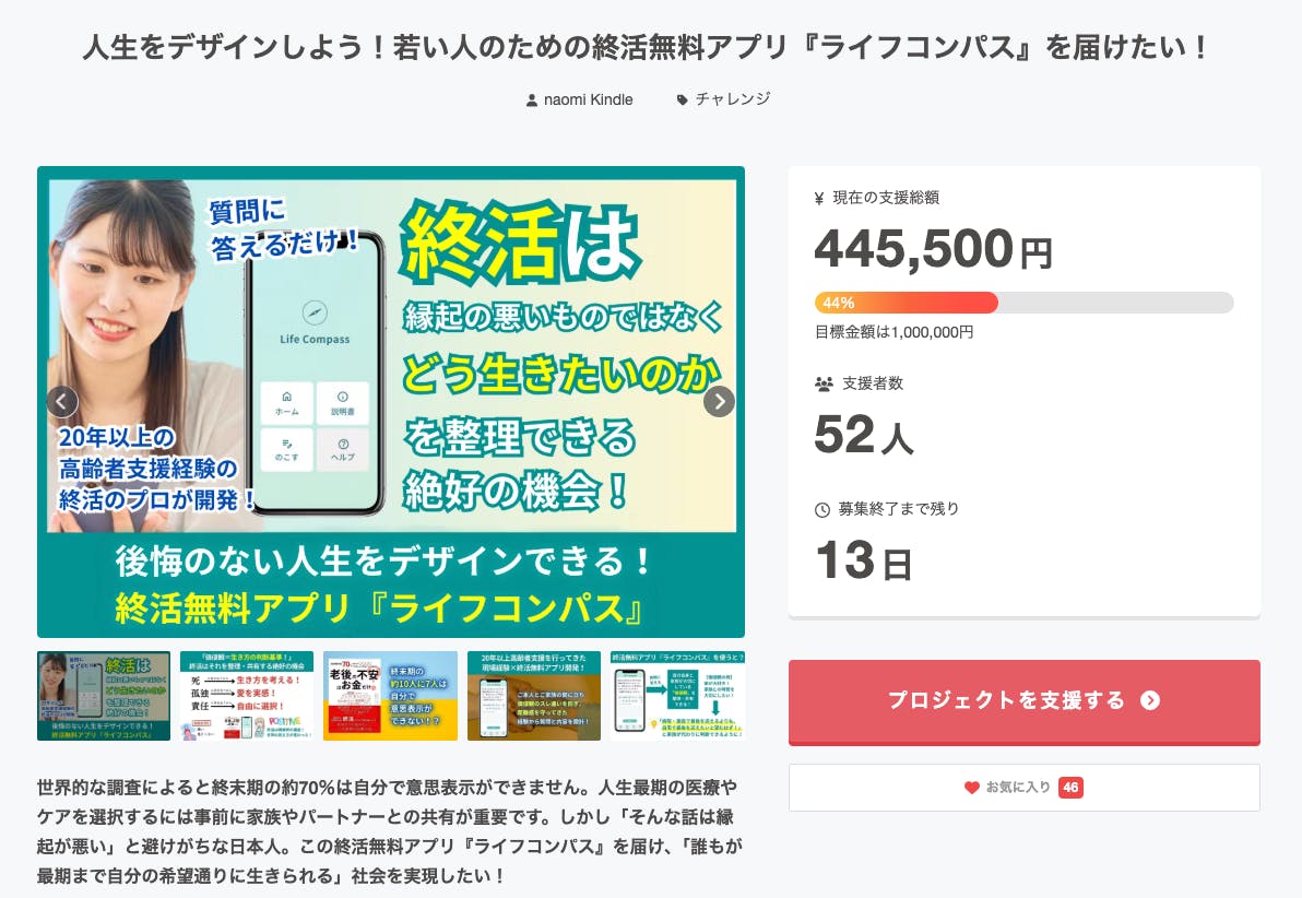 人生をデザインしよう!若い人のための終活無料アプリ『ライフコンパス』を届けたい!
