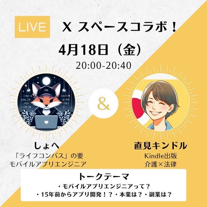 明日18日は「ライフコンパス」のエンジニア!しょへさんとお話します!