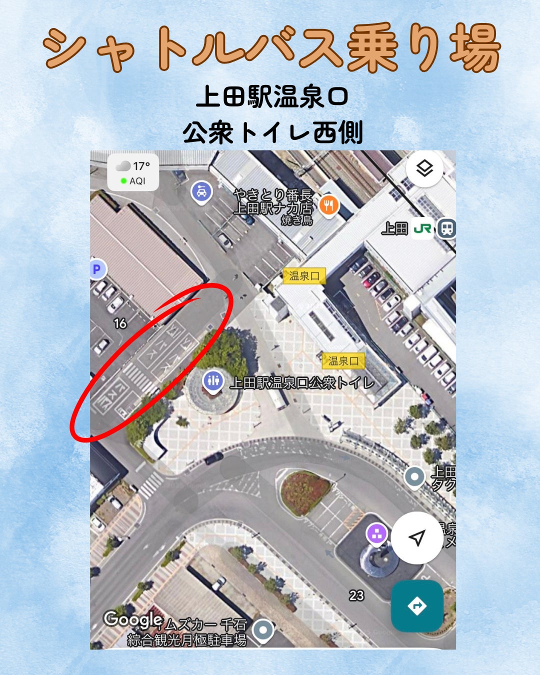 シャトルバス乗り場は、上田駅温泉口にある、