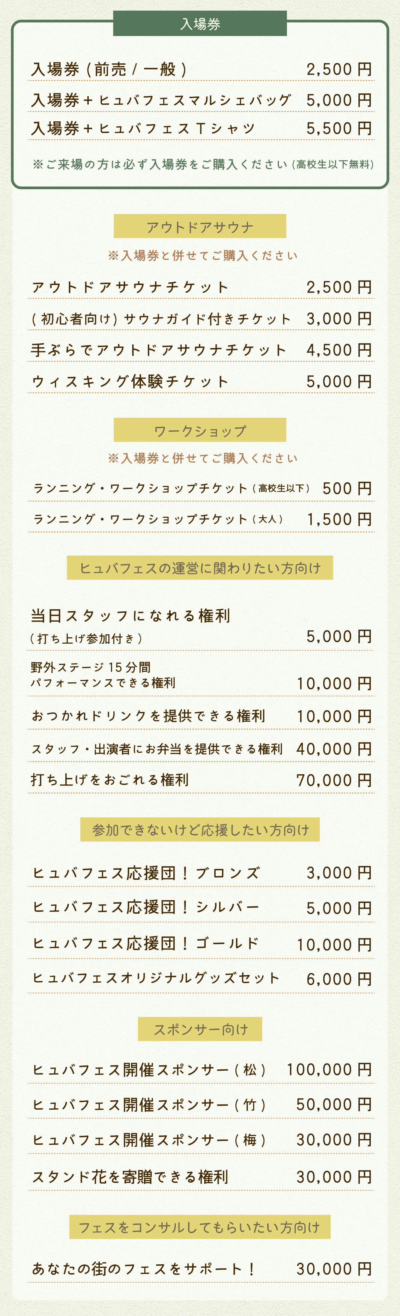 ヒュバフェスを200%楽しめるリターンを多数ご用意しています。