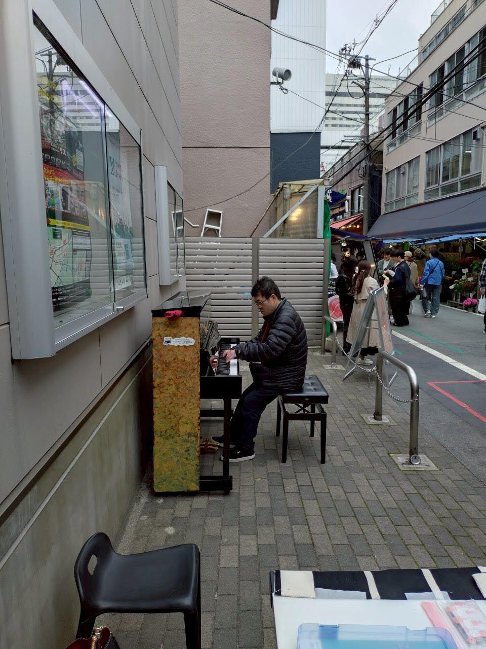 残念ながら5月17日と31日は雨天のため中止となり、24日のみの開催でしたが、仙台朝市にピアノの音色が響きわたりいつもと違った「まちの表情」を見ることができました。