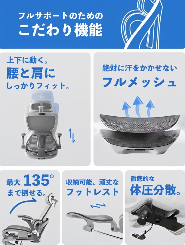 残り数日、特別価格で手に入る高機能オフィスチェア。フルサポートのためのこだわり機能により長時間のデスクワークから解放され、集中力もリラックスも思いのまま。