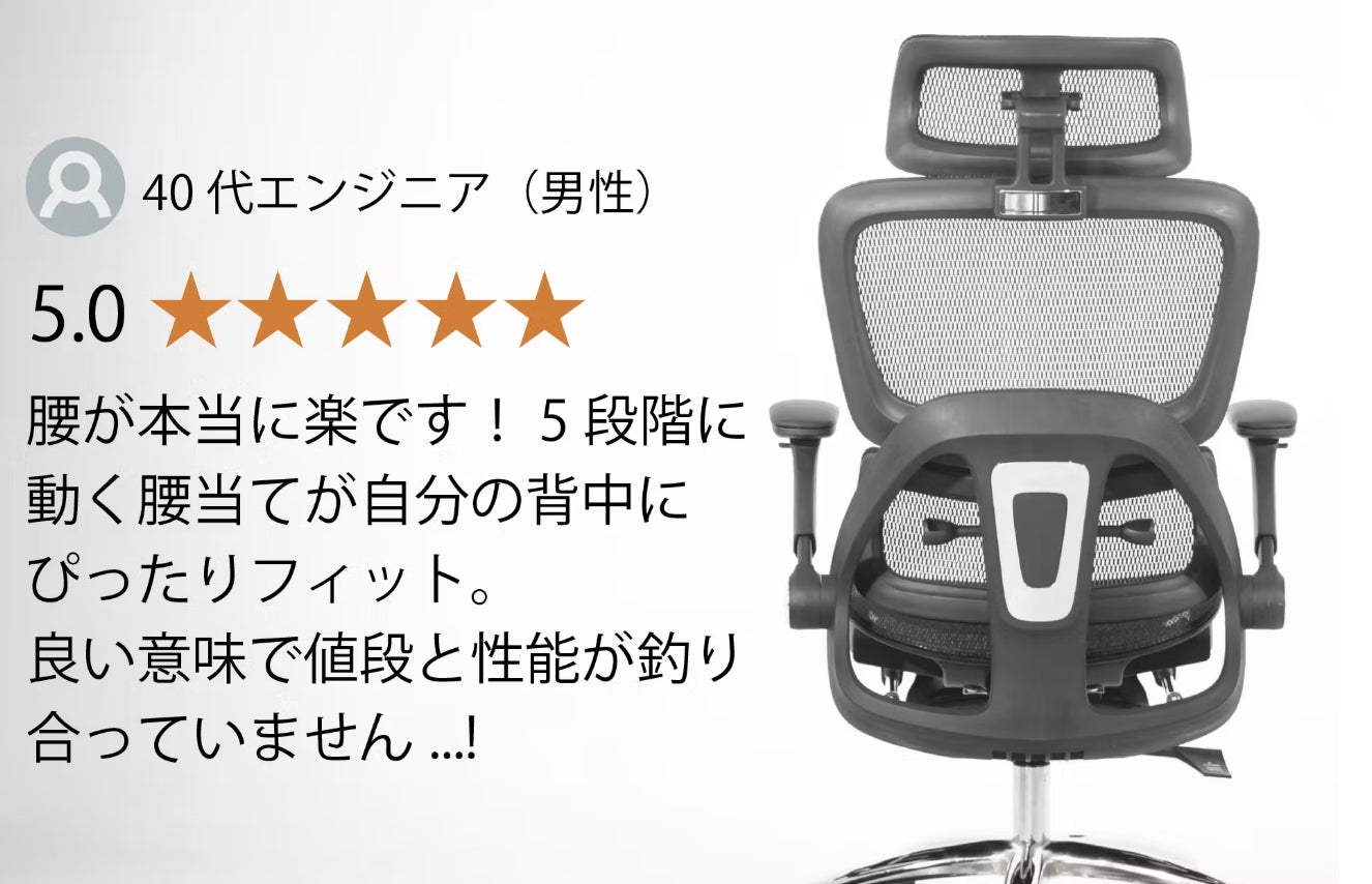 こんばんはリナまるです!長時間デスクワークによる首・肩・腰の悩みに、もう我慢はいりません!この度、まるでオーダーメイドのようなフィット感を実現した最先端オフィスチェアが、CAMPFIREに登場しました。あなたの身体を優しく包み込み、リラックスと集中力を両立。作業効率を格段に向上させます。どんな体型の方にも快適にお使いいただけるよう設計されており、フルスペックながら、今だけの特別価格でご提供いたします。プロジェクト終了まで残り6日間となりますので、このお得な機会にぜひお買い求めくださいませ!オーダーメイドを超える破格のオフィスチェアはこちら!