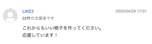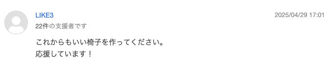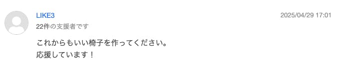 こんばんは!リナまるです!ご支援ありがとうございます!zibbraのオフィスチェアは誰よりもあなたの肩こりと腰痛に向き合うチェアです。自分だけの首肩にフィットするヘッドレストや腰の部分が前後・上下と動かすことができるので座るだけで背筋が伸びるんです!全身コリが辛いと思っている毎日のデスクワーク。zibbraのオフィスチェアを手に入れてもっとラクに、もっと快適にしませんか?