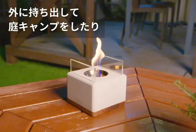 室内での使用はもちろん、ベランダや庭などの屋外で使用することもできます。片手で持ち運びができるので、庭キャンプやベランピングにもぴったりです。お部屋の中だけでなく、本格的なキャンプシーンでもおしゃれに使えるのがmfireです。