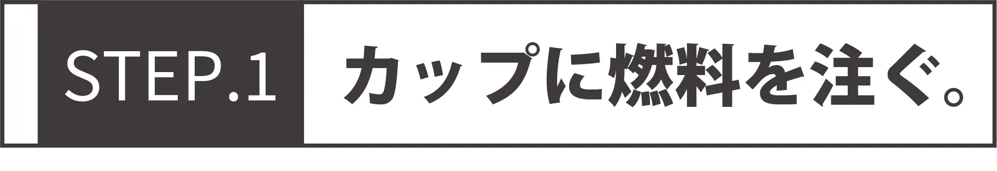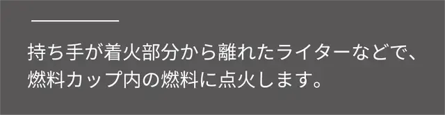 燃料を付属のカップに注いで、ライターで火をつけるだけです。