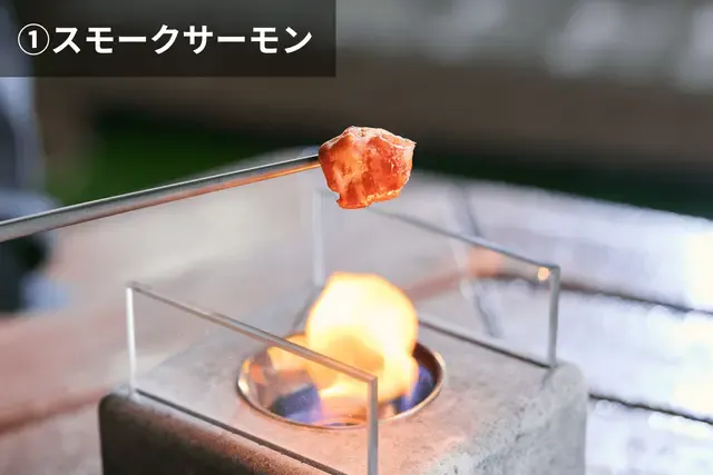 燻製の香ばしい香りが溢れるスモークサーモン。醤油をつけて炙れば、焦がし醤油のさらに香ばしい香りに!外はジュワッと、中はトロトロにするためには、短めに炙るのがコツです。