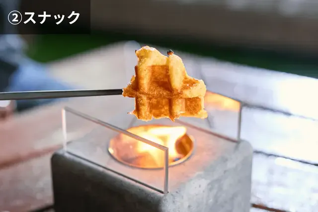 時間が経った焼き菓子も炙ると食感が激変。炙ることで、まるで焼きたてかのようなサクサク食感に。メープルやはちみつを塗れば、しっとりとした上品な味に変わります。