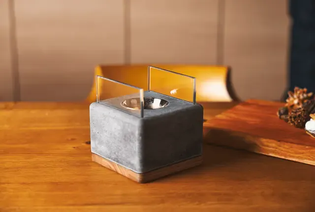 今回のmfireは、暮らしに馴染む温かみのあるデザインに仕上げました。モダンな雰囲気のセメントと、温かみのある木材を組み合わせることで、どんなお部屋にも合うようなシンプルで洗練されたデザインになっています。