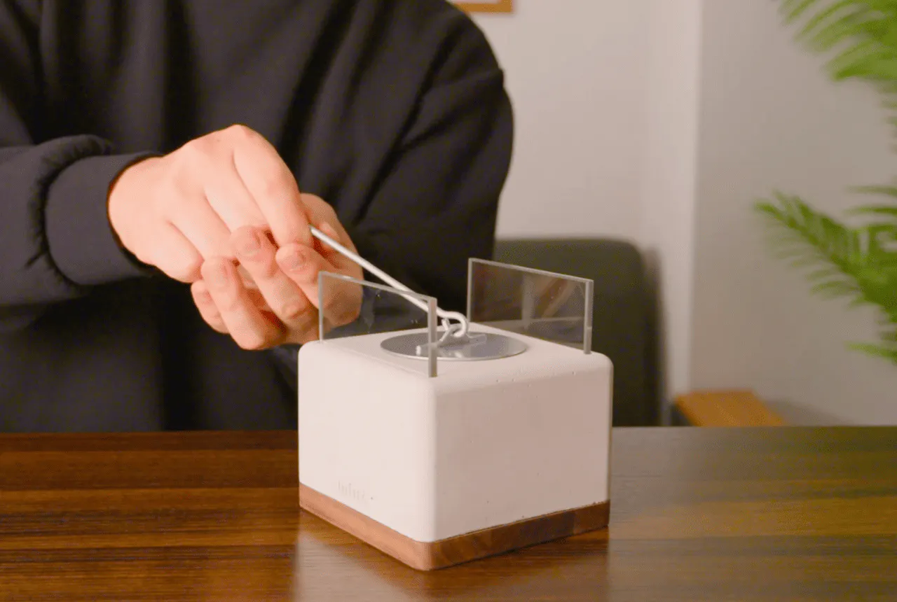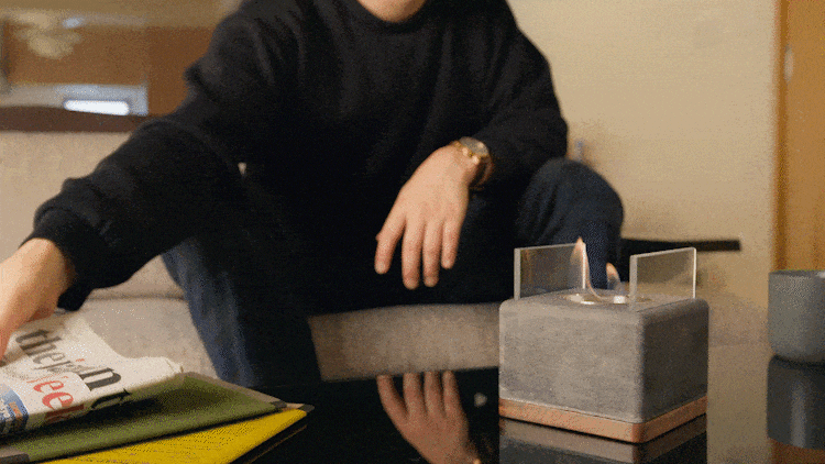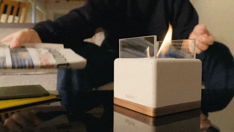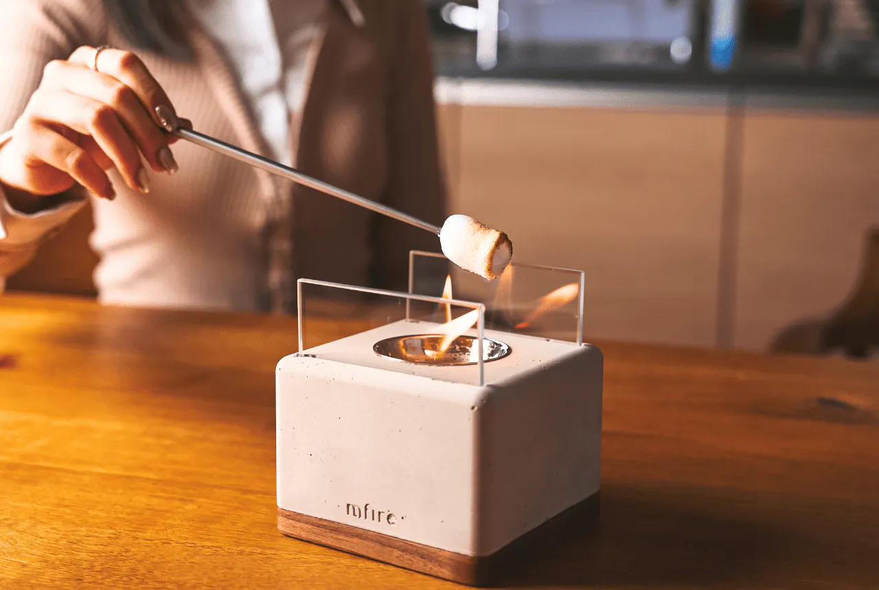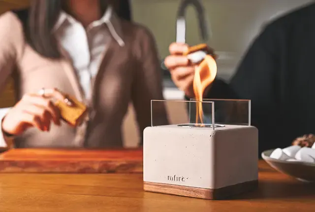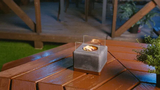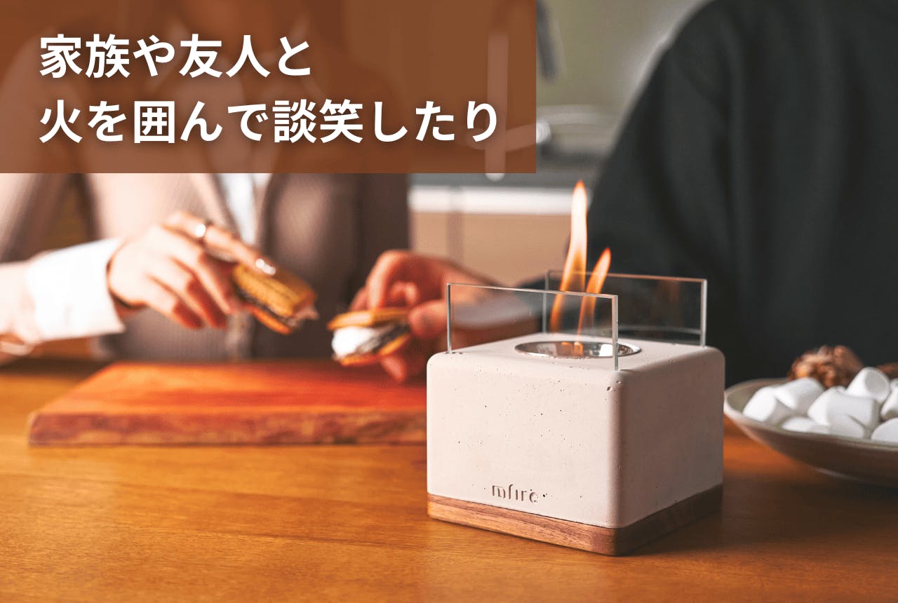 mfireはゆらめく炎を眺めていると落ち着くことに着目し、もっと手軽に焚き火気分を楽しめたらという思いから生まれました。自然に出かけに行くほどの時間がない中でも、また様々な準備をしなくとも、炎のゆらめく時間を楽しむことができます。