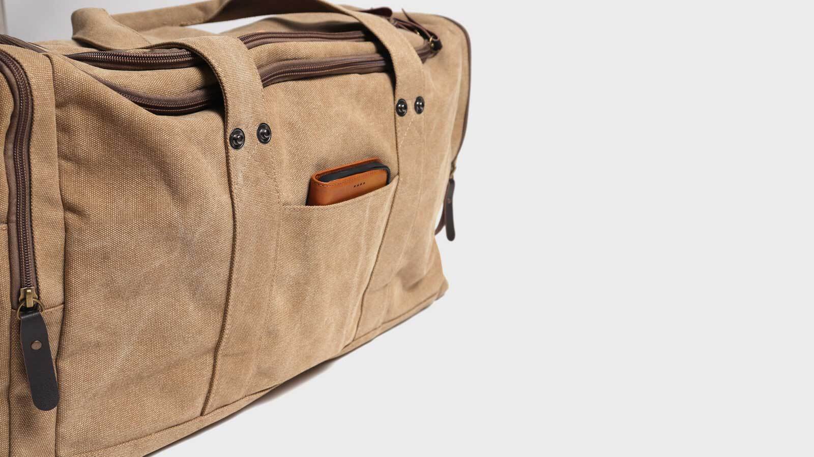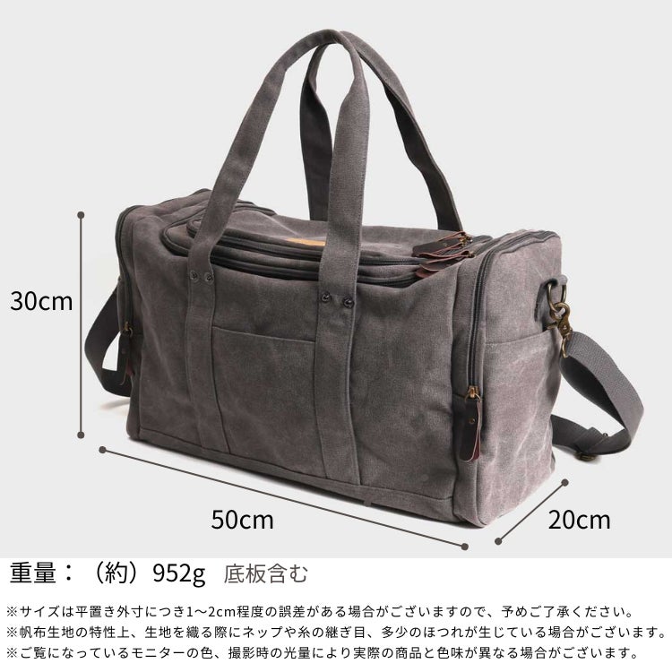 コンパクトながらスーツケース並みの大容量!小物も収納8ポケット軽量帆布ボストン