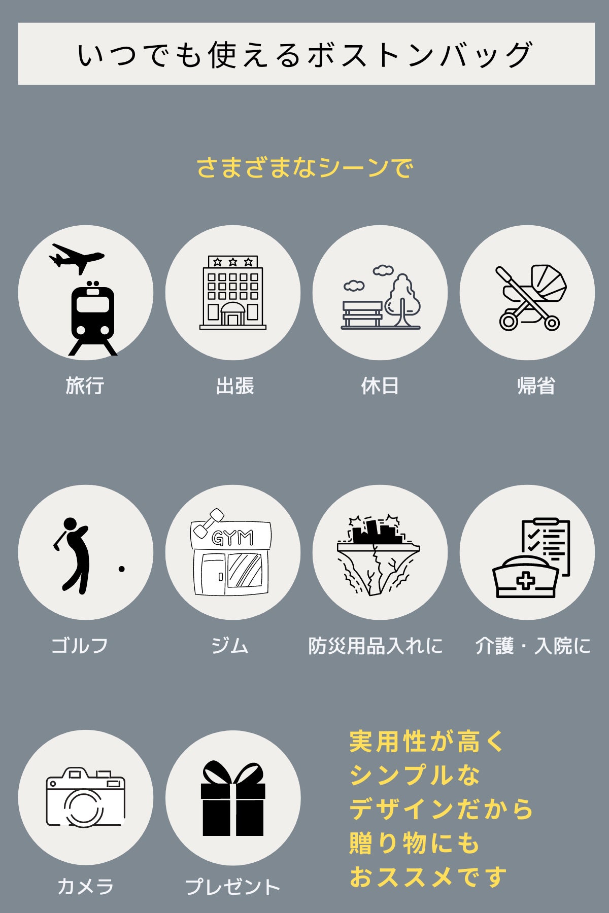 1室しかないボストンバッグやスーツケースは荷物が動いて偏ったり、グチャグチャになりがち。。そこで荷物が動きにくい「小分けに収納できる構造」にしました。