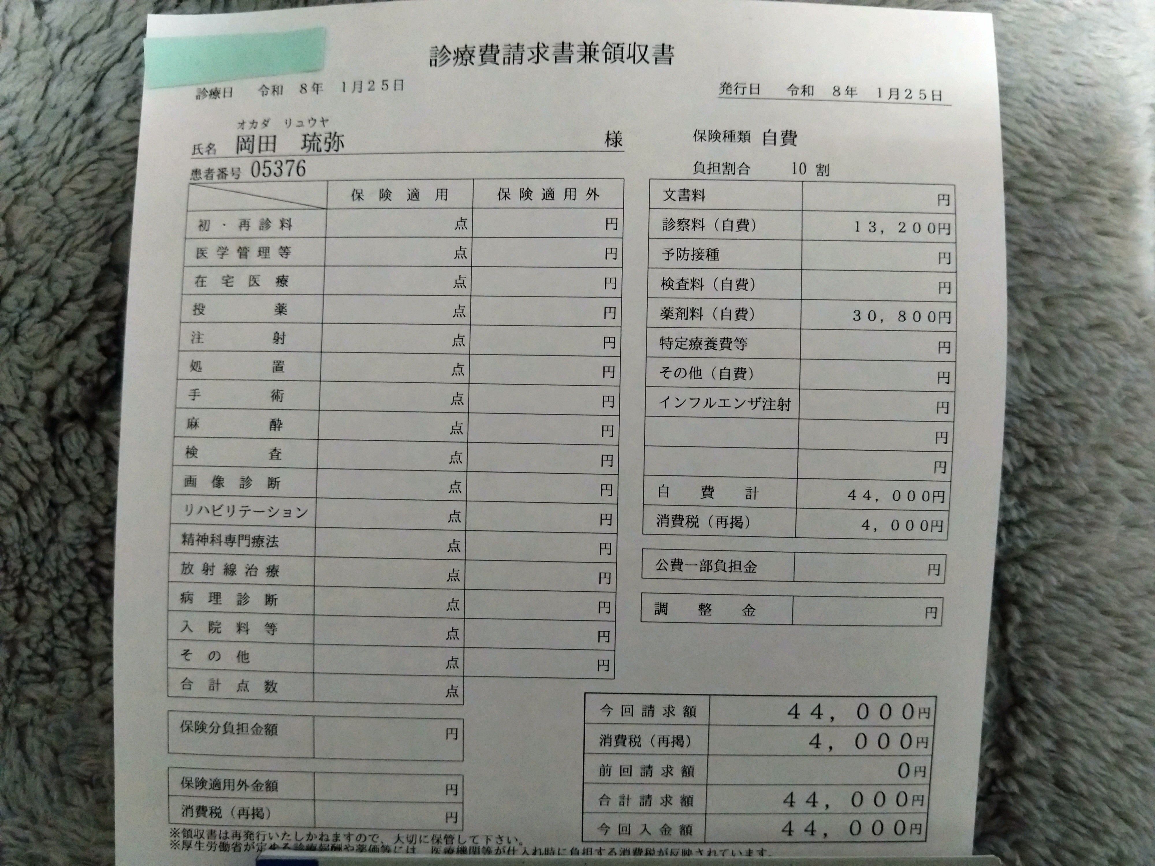 (令和7年 3月〜6月分の治療費)