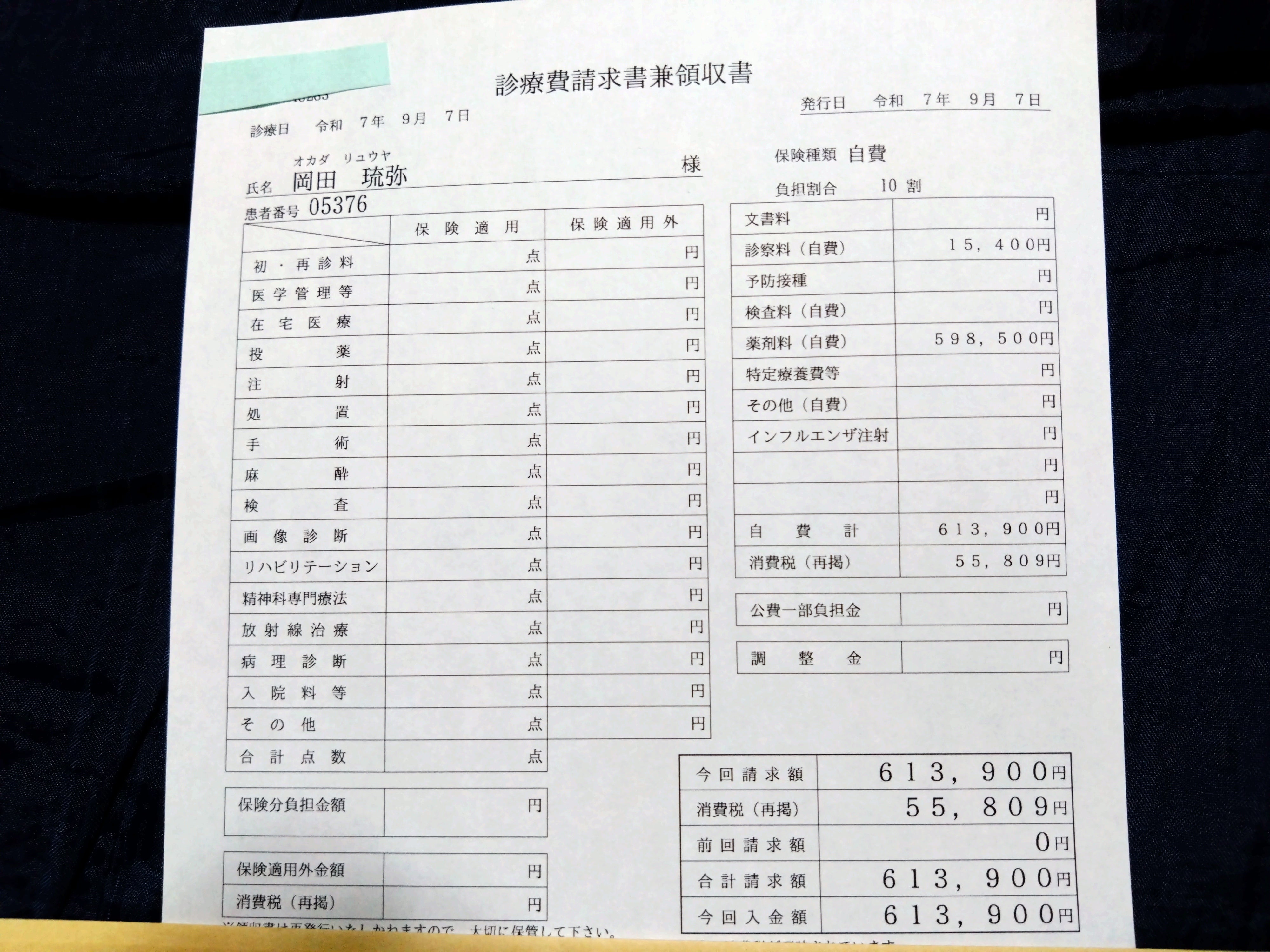 こんばんは。お疲れ様です。昨日夕方から、琉弥と一緒に低身長専門医に行きました。治療継続の証明で、領収書を公開させていただきます。皆様のご支援のおかげで治療を継続が出来ていて、感謝しかありません。診察では、思春期には入ってると医師からお話がありました。※声変わりや、外見的に変化はあまり無いです。思春期に入るとホルモン製剤注射治療の効果が減少します。■今後の治療の方向性です。現在も飲んでいる『プリモボラン』と『リュープリン』注射治療(月に5万円前後)に切り替えて、治療を継続していく予定です。この治療での効果:思春期の進行を遅らせ、骨年齢の進行を抑制して骨の成長期間を延長します。少しでも可能性があるのなら、低身長治療を引き続き頑張っていきます。本当にありがとうございました。