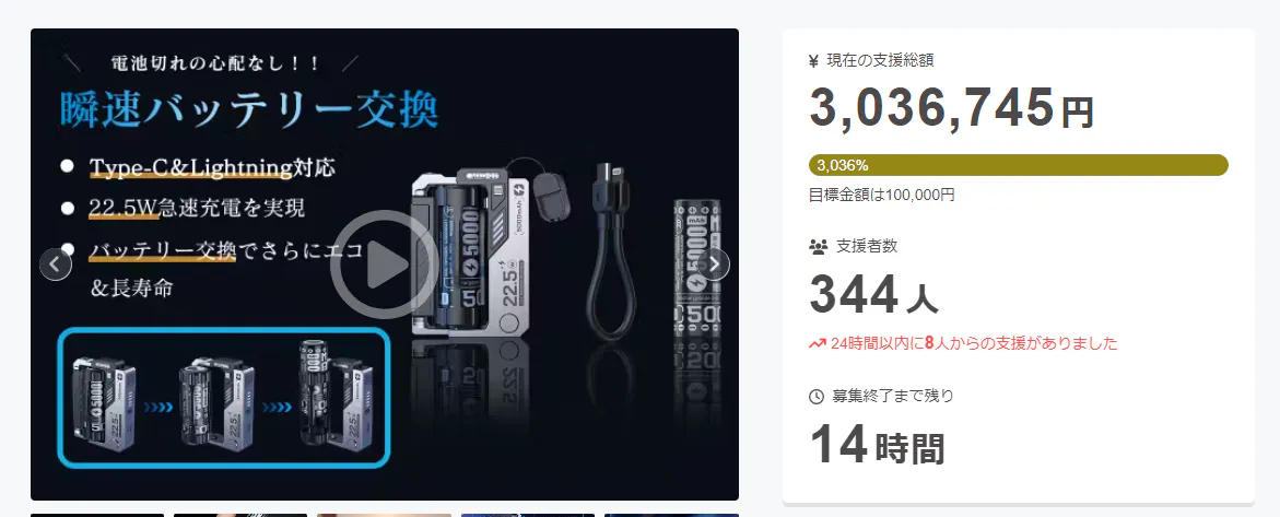 「瞬速バッテリー交換&2WAY充電対応!パワフルな22.5W双方向充電器」プロジェクトへのたくさんのご支援、誠にありがとうございます。